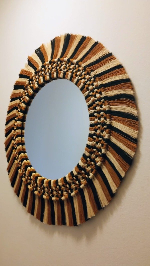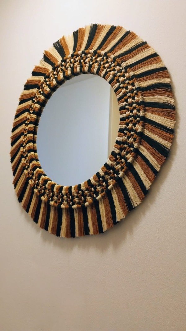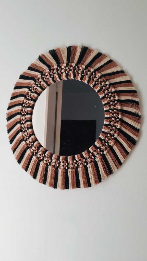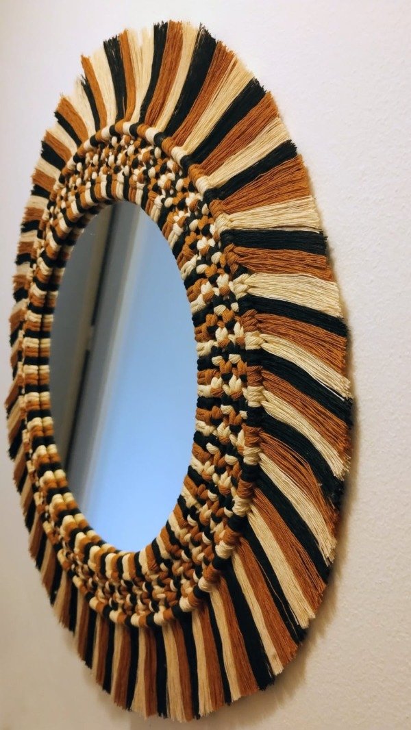Medidas aproximadas: 50 cm de diametro total del tejido. El espejo solo mide 30 cm (20 cm corresponden a tejido)
