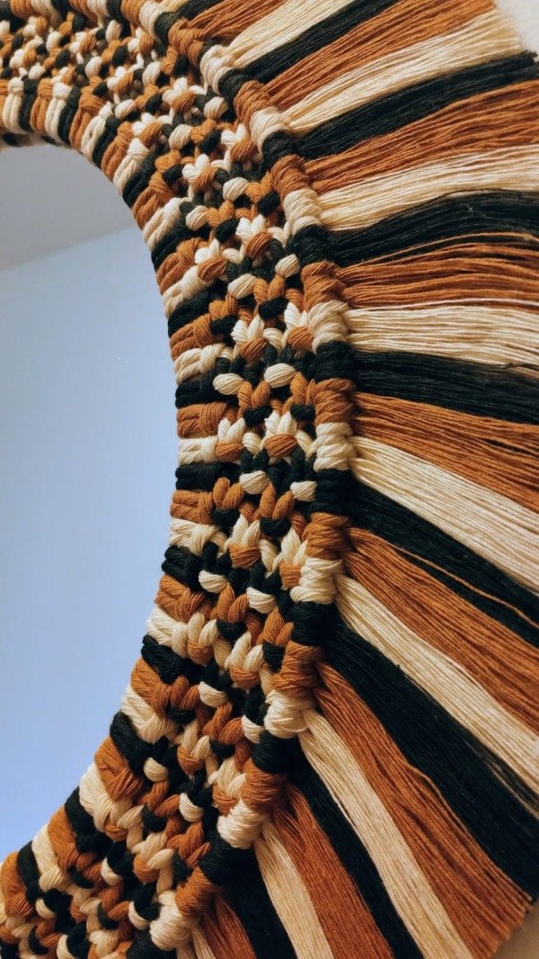 Trabajo realizado con hilo de algodón arena, cobre y negro.