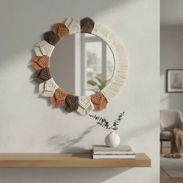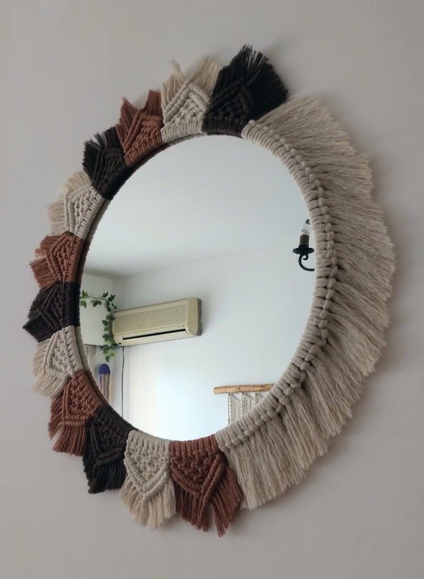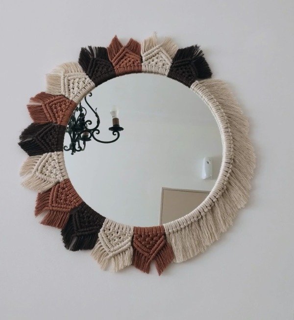 Trabajo realizado con hilo de algodon en tonos cobre, crudo y chocolate.