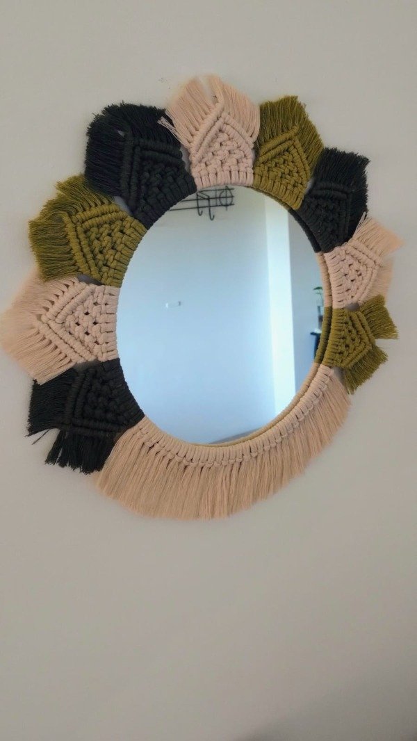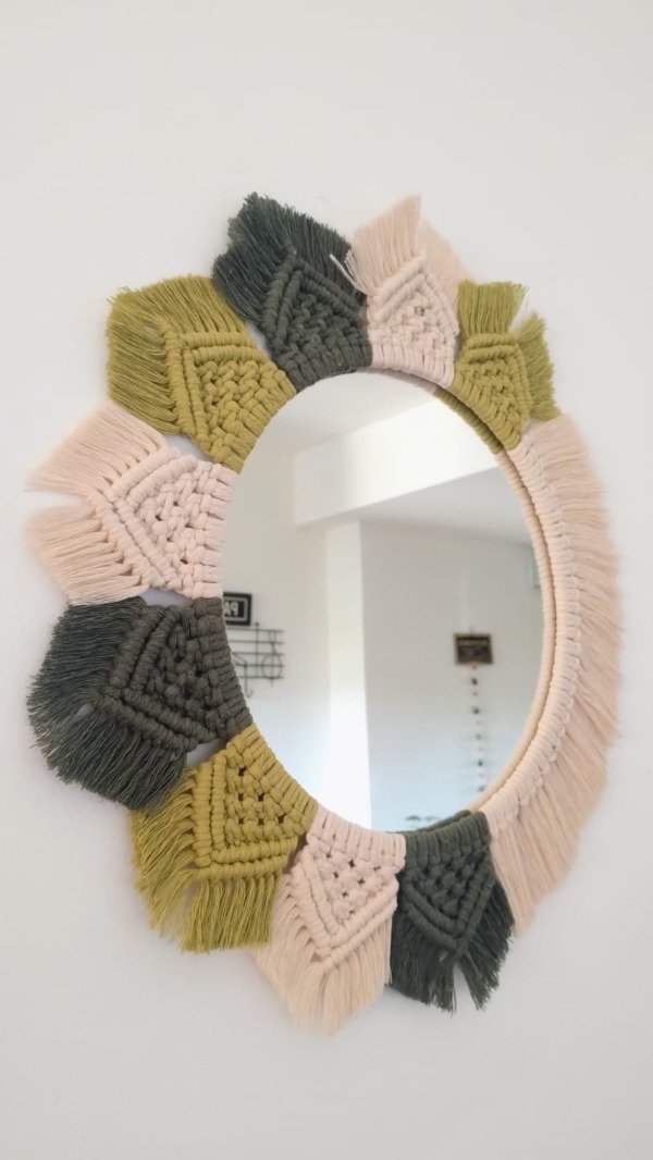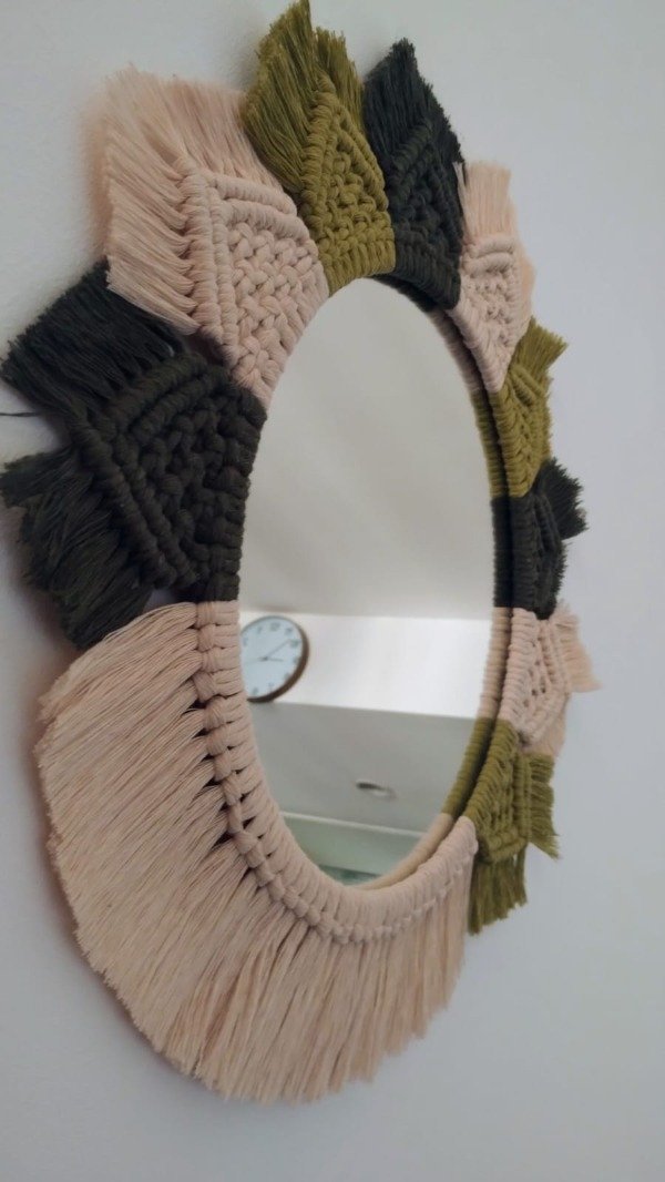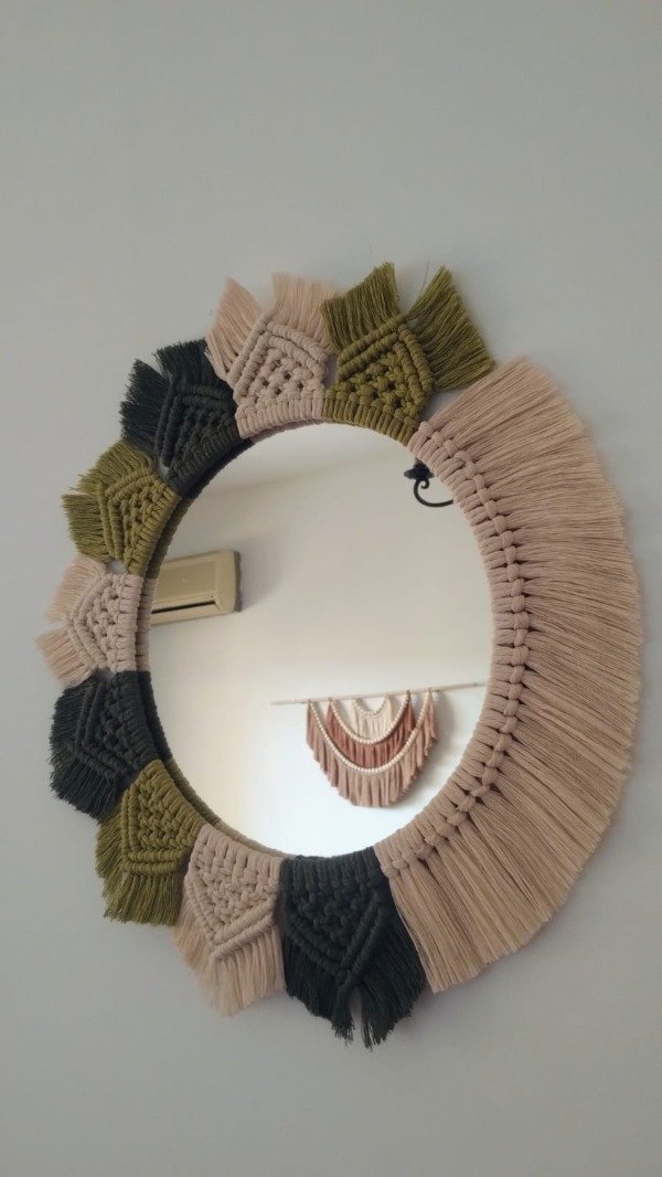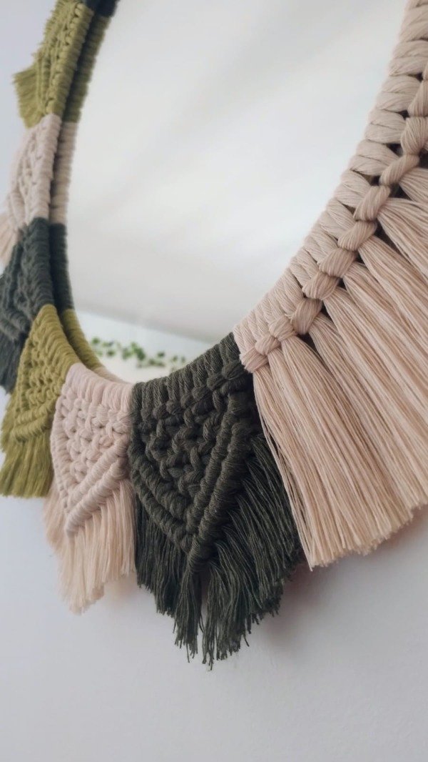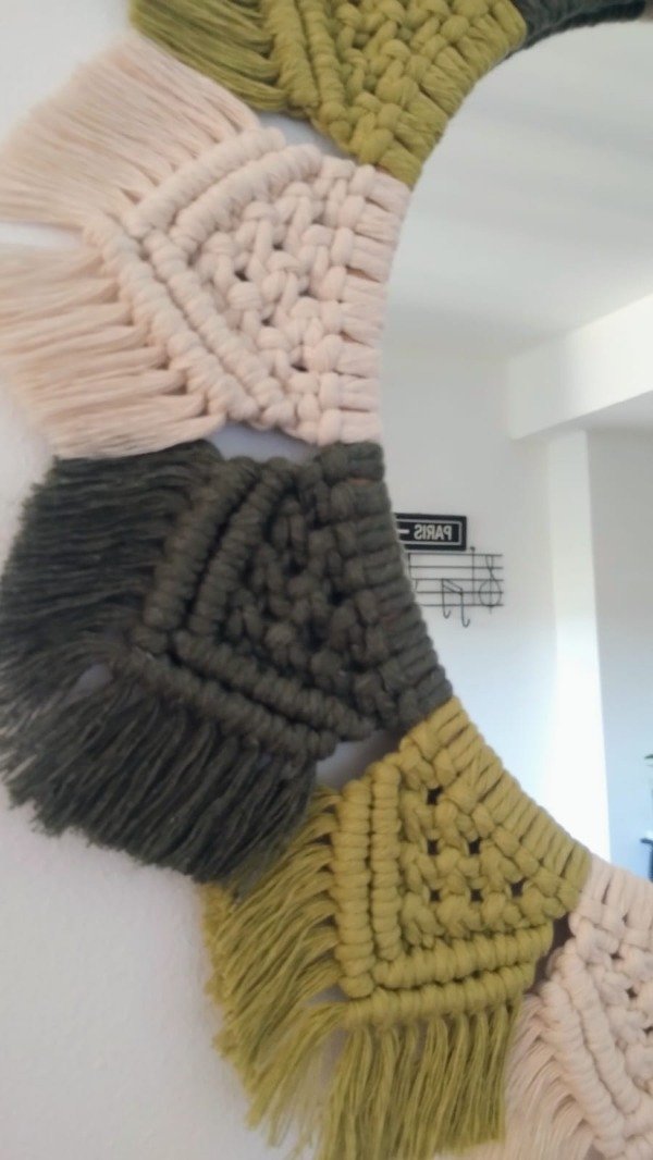 Trabajo realizado con hilo de algodón en tonos Verde Musgo, Arena y Verde lima.